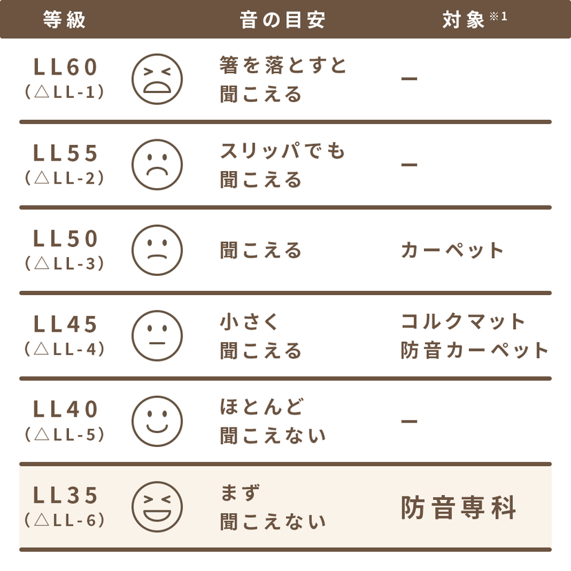 | 防音性 | LL35(△LL-6) | LL35(△LL-6) | LL50 |