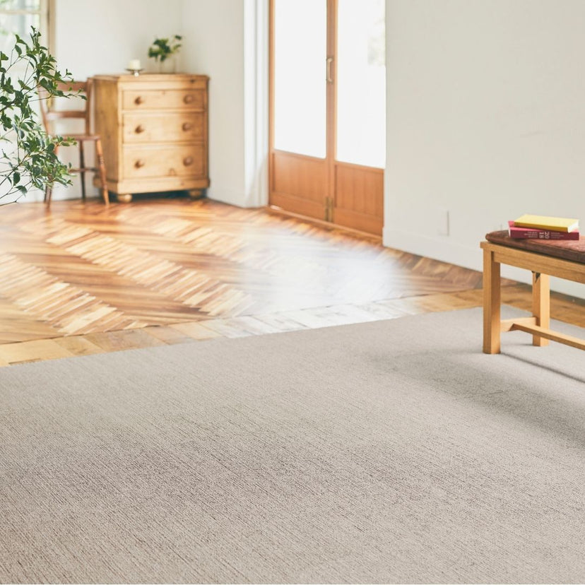 五つ星ホテルのカーペットや一流ブランドのラグを開発するデザイナーによる、高級感あふれるデザイン。ミリ単位の調整により継ぎ目が目立ちにくくなったことで、部屋全体に敷くと開放的な空間をお楽しみ頂けます。