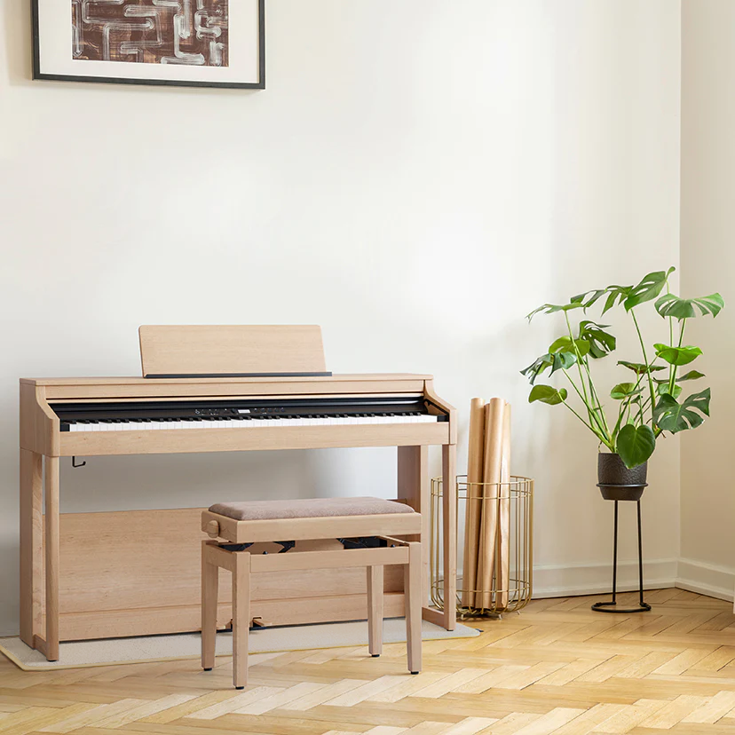 お部屋のテイストやピアノの色味を選ばない、統一感のあるグレー色とホワイトベージュ色をご用意しています。
