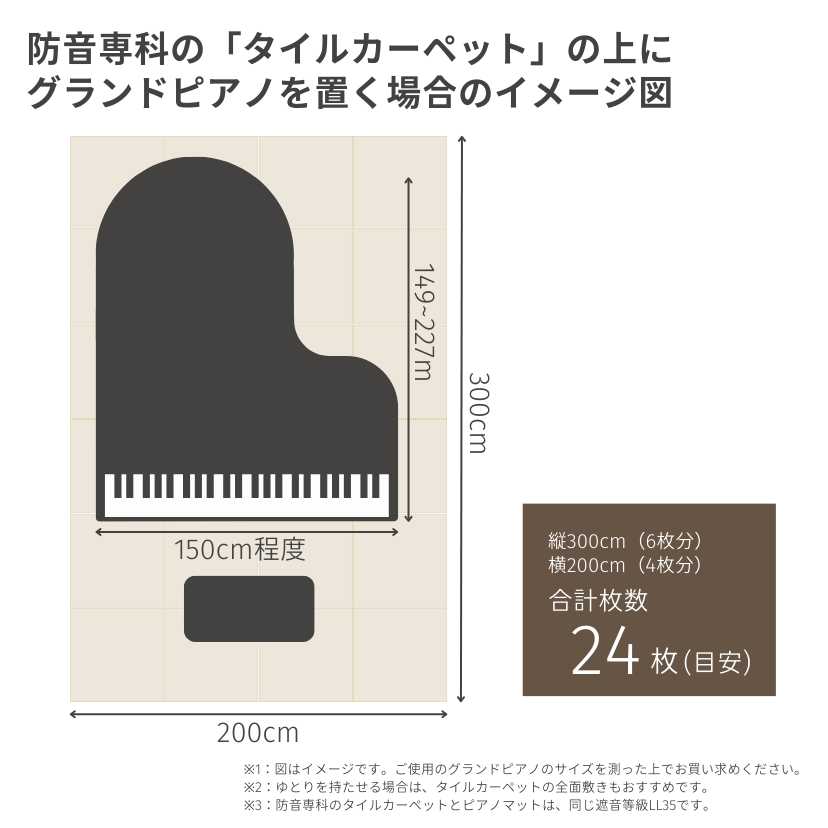 騒音トラブル対策の定番 全面敷きならグランドピアノもOK |